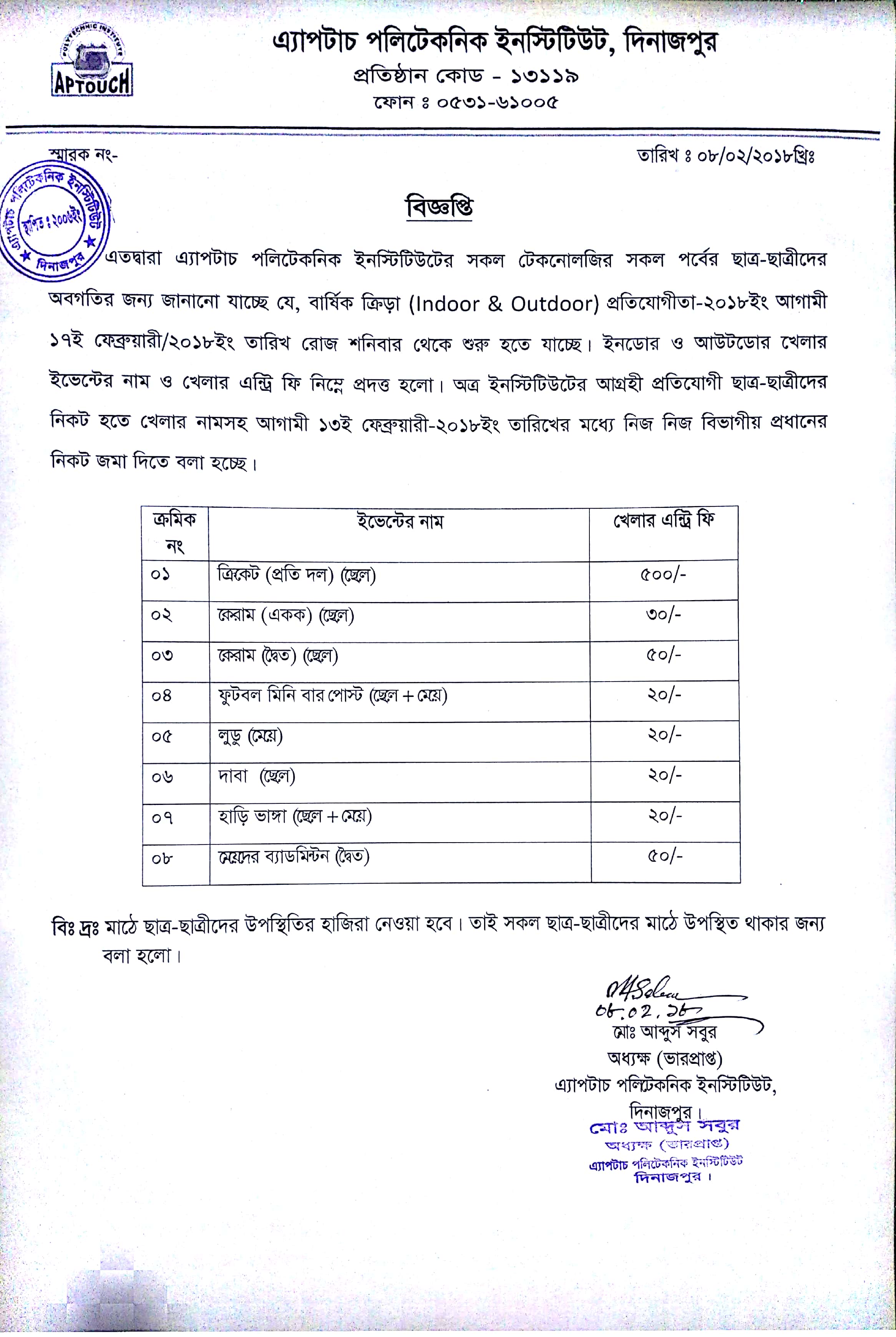- Facebook Page of Aptouch Polytechnic Institute