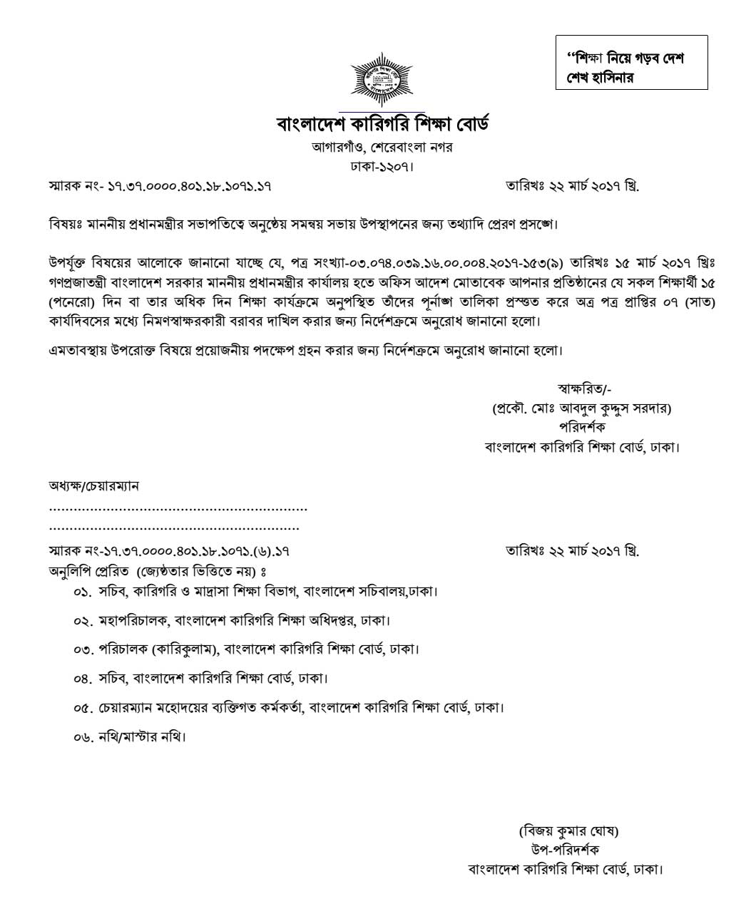 ১৫ (পনেরো) দিন বা তার অধিক অনুপস্থিত ছাত্র/ছাত্রীদের জন্য নোটিশ
